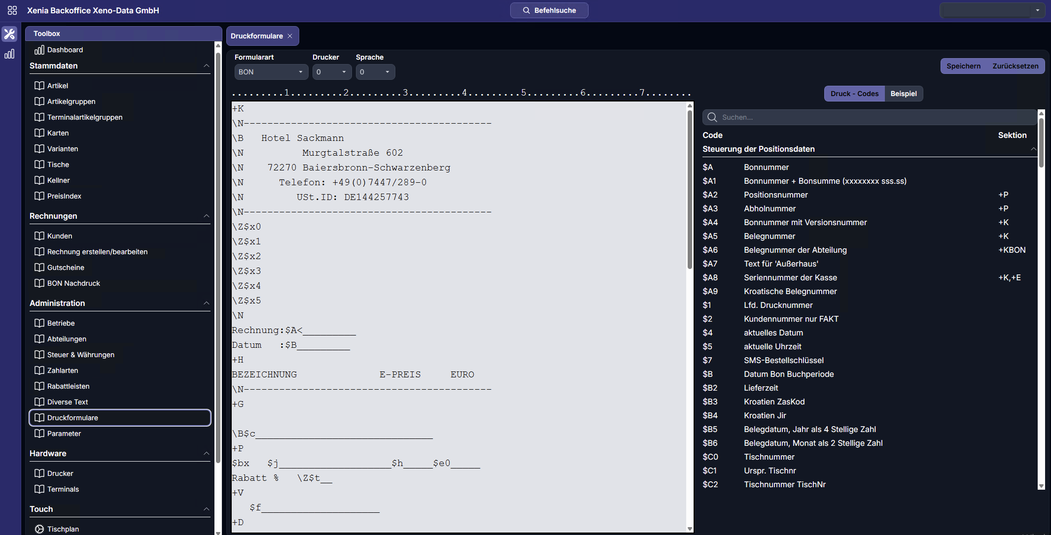 Das Modul Druckformulare dient zur Konfiguration und Anpassung von Drucklayouts innerhalb des Kassensystems.
